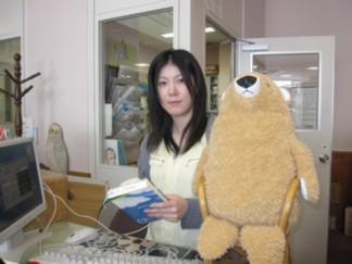 遠藤 千沙子(えんどう ちさこ) 図書館司書 ※写真に一緒に写っているのは、 図書館の番人(住人?) Bookuma[ブックマ]