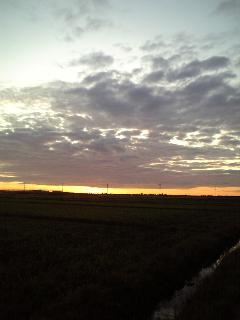 田んぼの稲は日照不足のなかでも伸びて、緑の絨毯のように広がっている