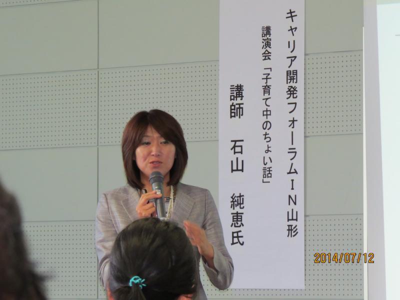 7月12日に山形市にある遊学館を会場に、福島から石山純恵さんをお招きし「子育ねちょい話(ばな)」と銘打って講演をしていただきました。終了後、希望者にはキャリアカウンセリングも受けていただきました。