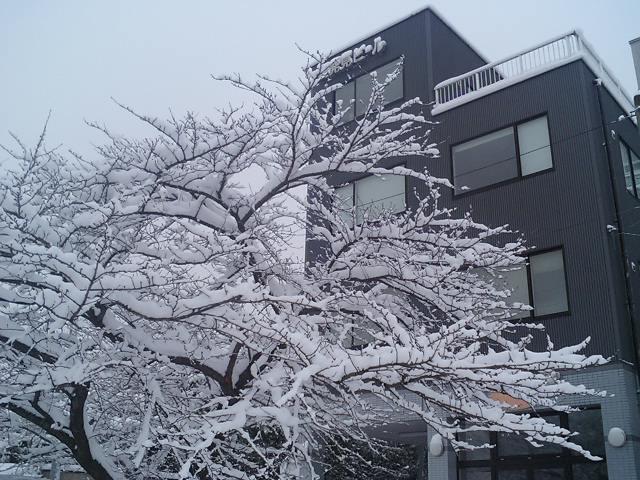 春のサクラもいいが、真っ白い雪桜もなかなか。あとひと月チョットで大変身!デスネ。