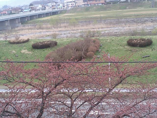 遠景では分かりませんが、だいぶ開いてきました。木全体もピンクがかって来たのが分かる思います。
