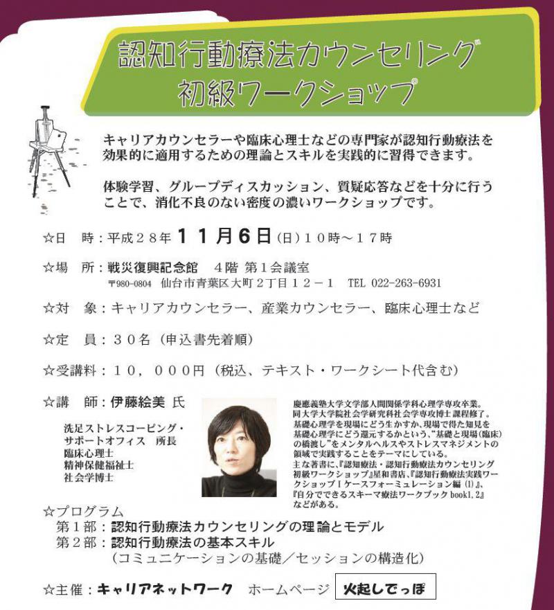 今年で連続4回目となる認知行動療法ワークショップを開催した。