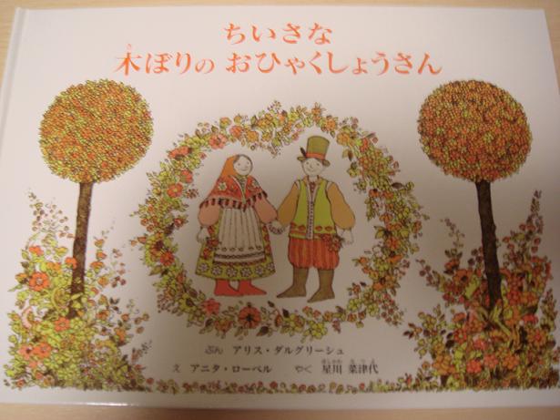 “むかし むかし、あるところに、ちいさな木ぼりのおひゃくしょうさんと ちいさな木ぼりのおかみさんが、ちいさな木の家に すんでいました。きれいなあかいやねのすてきな家で、りょうがわには みどりの木が うえてありました。”