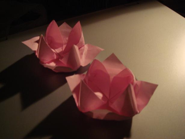 お彼岸なので、折り紙でハスの花を折ってみました。
