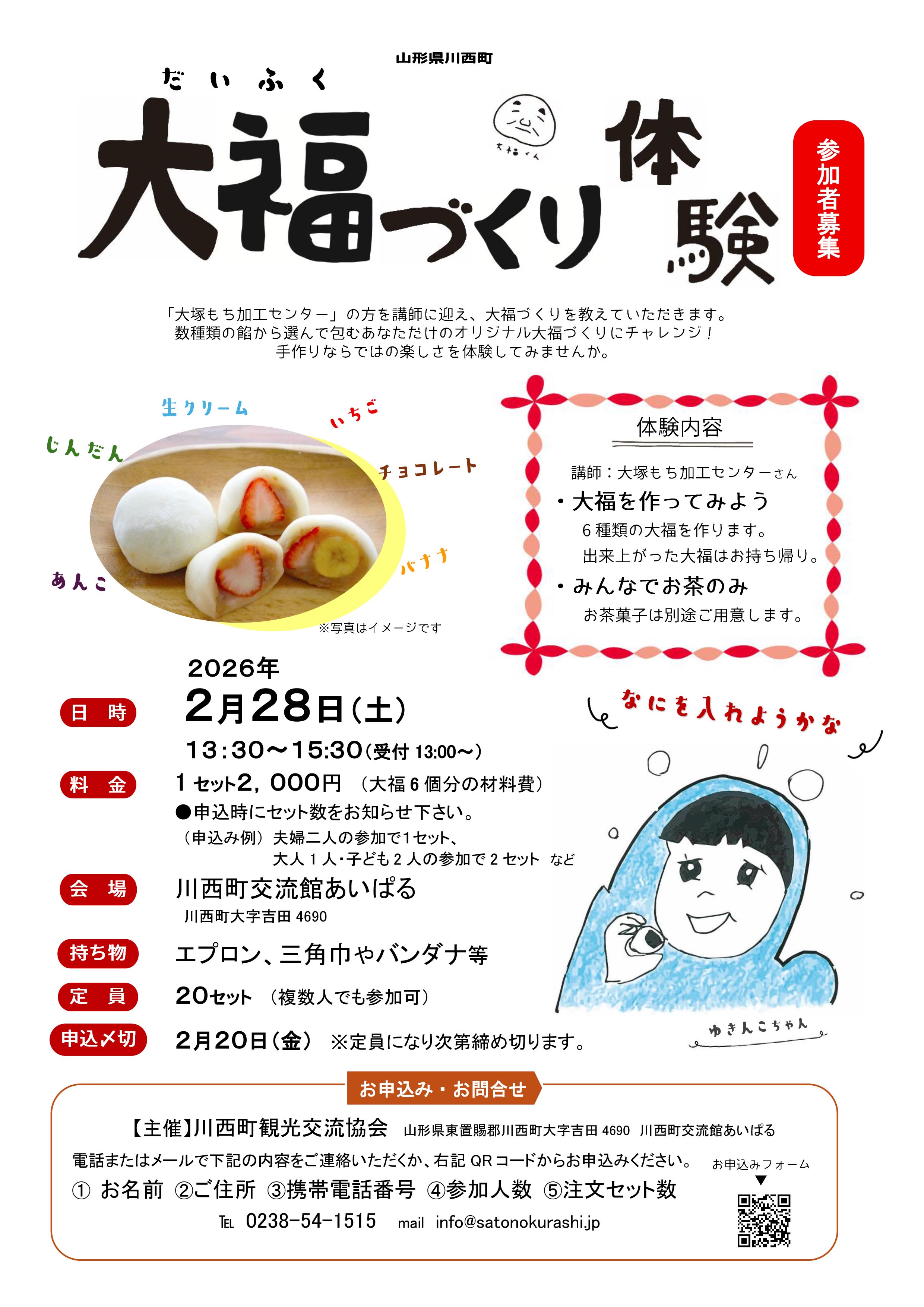 杵つき餅や大福、おこわなどが大人気の「大塚もち加工センター」さんを講師に迎え、大福づくり体験を開催します。