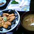 ウニ丼とイカ刺。相方のビンチョウマグロ丼も大当たりでした!