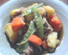 ●具材:牛肉・ジャガイモ・ニンジン・玉ねぎ・糸コンニャク・冷凍キヌサヤ