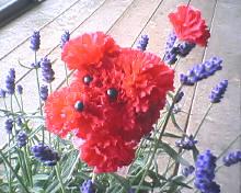 造花のカーネーションでできたワンちゃんの飾り(カーネーションプードル)がアクセント♪