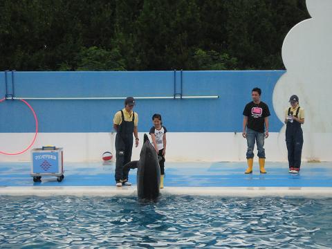 毎回観客の中から2人、イルカと握手が出来るようです。