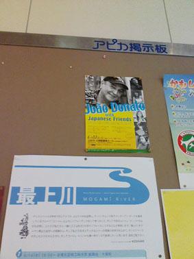 山形駅構内、改札口、切符売り場の右側に掲示板があります。他のポスターより小さめですが、ブラジルカラーとドナートの写真で一目でわかりますよ。