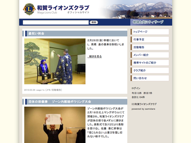 岩手県北上市の和賀ライオンズクラブさんのオフィシャルサイトを「さみだれノート」で製作しました。