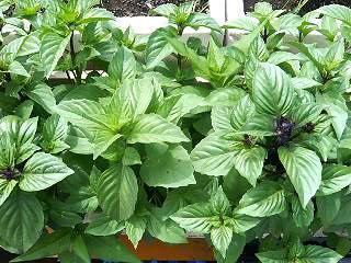花の部分がスイートバジルは緑色に対して、シナモンバジルは紫色です。
