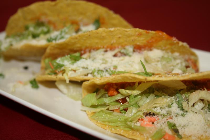 たっぷり野菜とチリコンカンがぎっしりつまったタコス☆