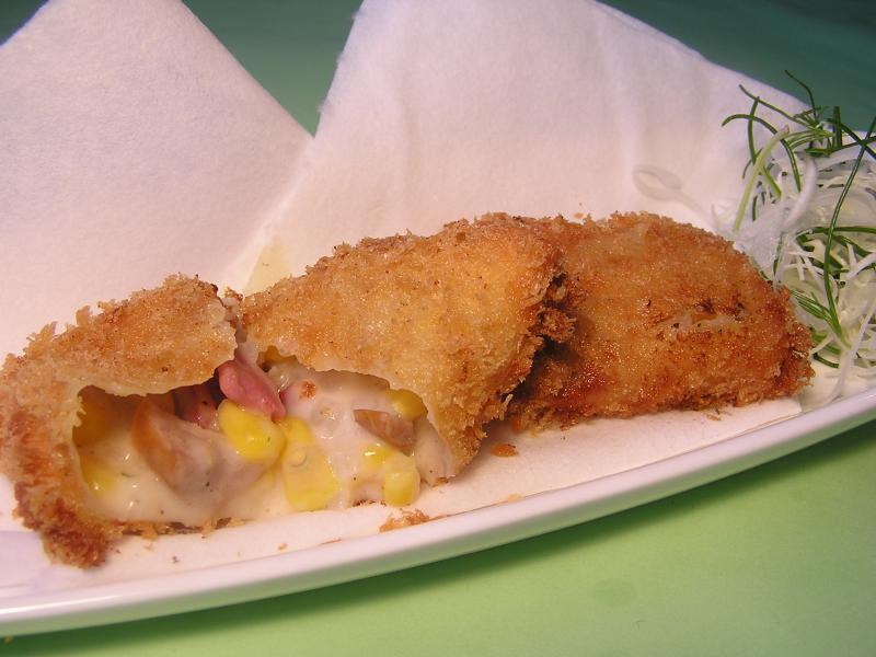 映時庵手作りのなめらかでとろーりクリーミーなコロッケをアツアツで召し上がれ。