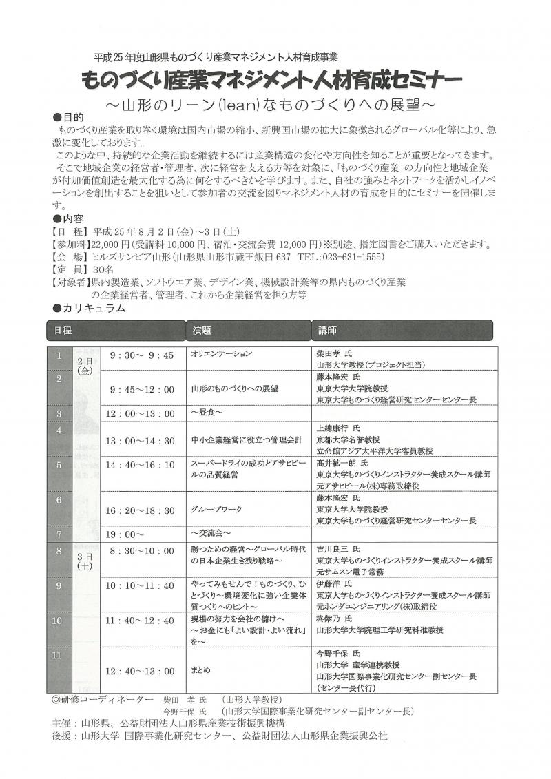 平成25年度山形県ものづくり産業マネジメント人材育成事業