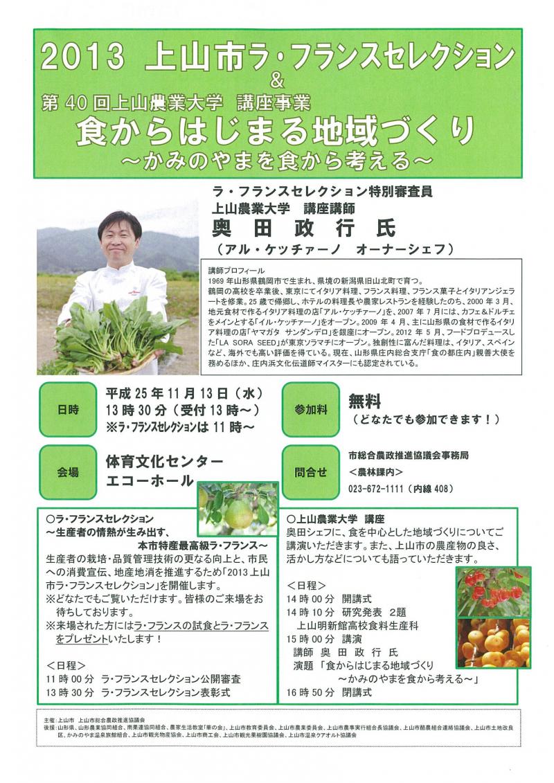 ▼ラ・フランスセレクション&アル・ケッチャーノオーナーシェフ奥田氏講演会