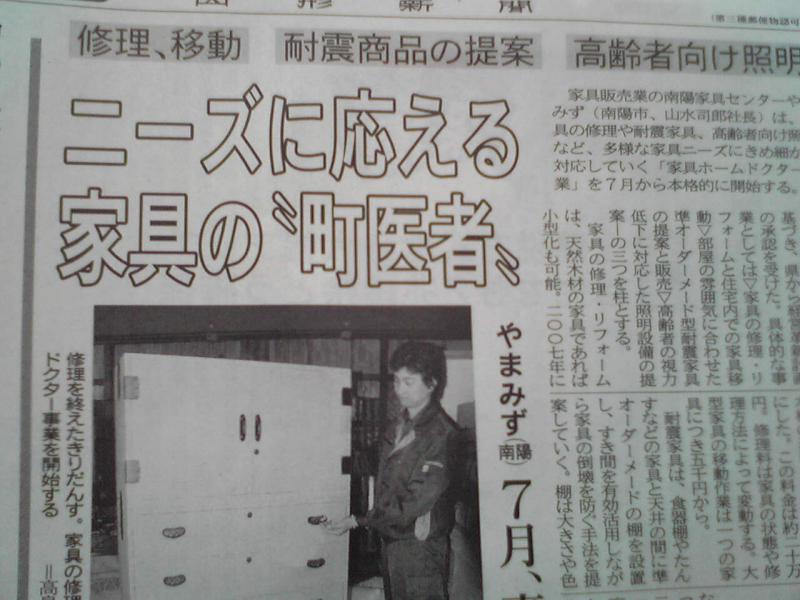▼南陽家具センターやまみずさんの経営革新が山形新聞で紹介。