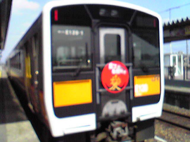 写真は、米坂線の新型車両と「愛」のヘッドマーク