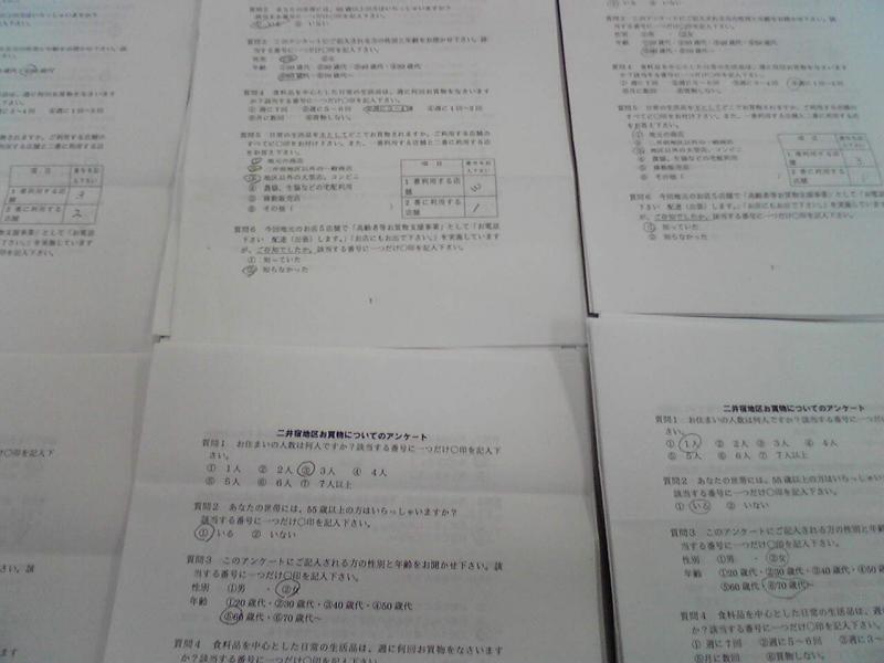 ▼二井宿地区お買物アンケート回収中です。