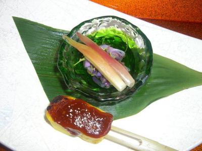 こちらはアスパラガスです。 割ると、茎の中から水分が溢れてきます。 びっくりするくらい甘〜い味わいと、 生ならではのシャキシャキした食感がとっても面白い♪ 旬の時期だけのちょっとした贅沢。 機会があったらぜひ食べに来てください。ヽ(^。^)ノ →アスパラガス(ウィキペディア) 少し分かりにくいかな?水々しい茎の部分です。 お味噌をつけていただいても美味しいですよ♪ |
