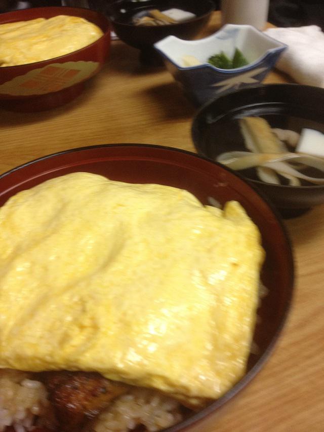 鰻丼の上に出汁巻き卵が乗っている丼です。