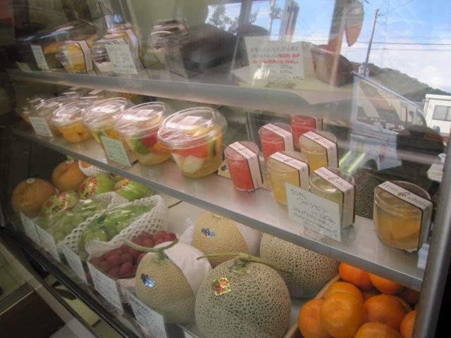 美味しそうなフルーツやお菓子がケースにずらり並んでます!