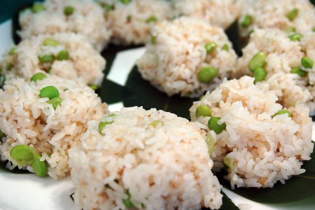3)炊き上がったご飯に枝豆を混ぜ合わせて完成。