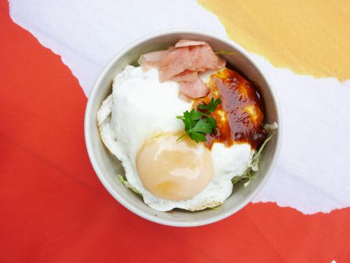 ▼【定番】めだま焼き丼!
