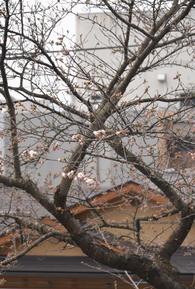 烏帽子山の開花宣言の目安となる標本木が開花基準の5輪の開花が確認できましたので、さくらちゃん的には9時30分に開花宣言(非公式)です。