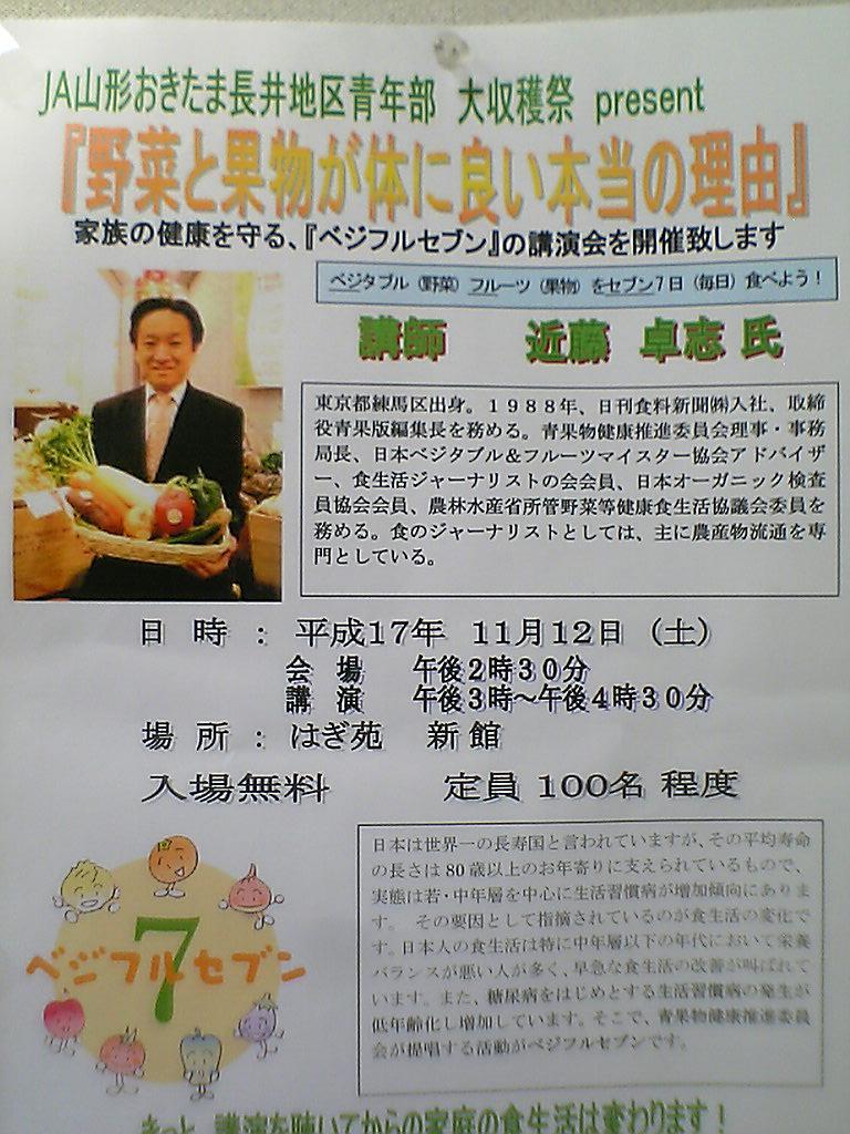 記念講演として講師に近藤卓志氏を向かえ『野菜と果物が本当に良い本当の理由』