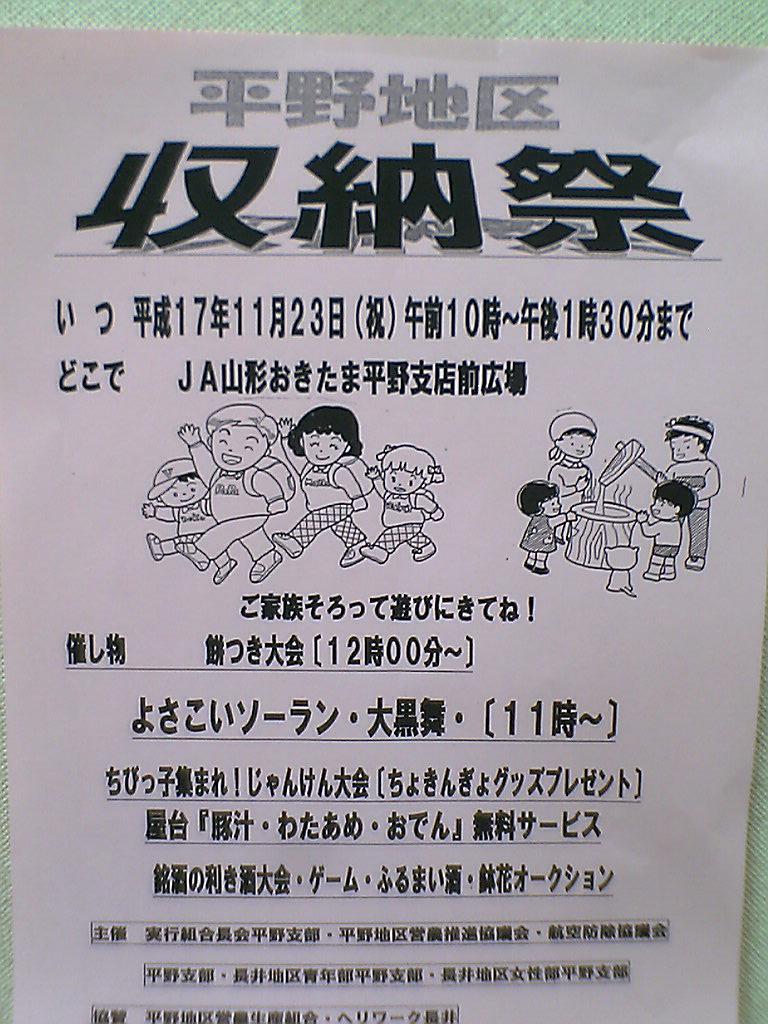 今年の実りに感謝して平野地区大収納祭が11月23日(祝)に開催されます。