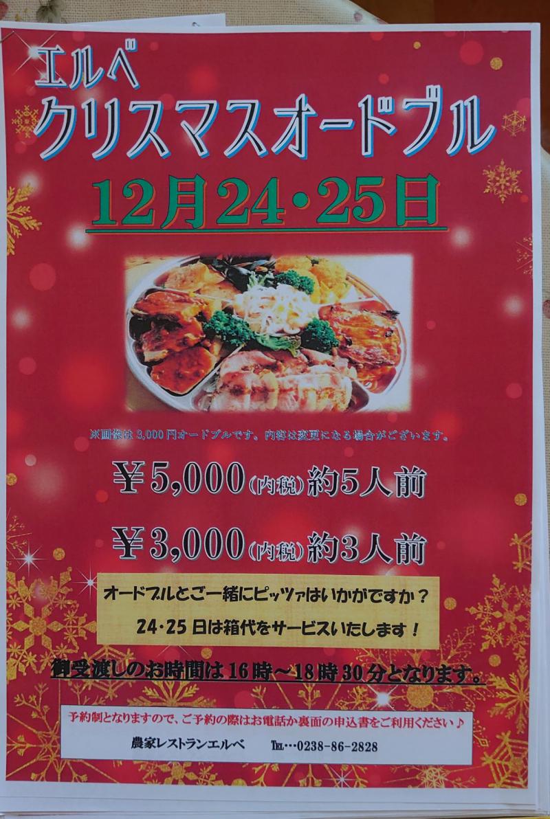 ご予約は・・・農家レストランエルベ 0238-86-2828 まで