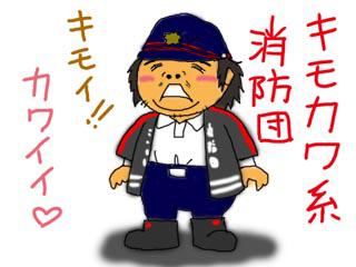 でも、なんか法被って、現代社会においてはお祭りのときにしか着ないものだと思っていた。まあ出初式などを見ても、消防団にはお祭りの要素が少なからずあることは否めないだろう。しかし、家が燃えて人が不幸に陥っているときに、法被を着てお祭り気取りというのは不謹慎極まりないと思う。「燃〜えろよ燃えろ〜よ、炎よ燃〜え〜ろ♪」なんてキャンプファイヤーの歌が聞こえてきそう。法被着て超ハッピー♪なんつってね。…っつーか、私の存在自体が最も不謹慎極まりないと思う。生まれてゴメンナサイ…。