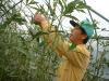 一番大変なのは収穫です。オクラは表面が細かい毛に覆われているので、直接手で触れていると皮膚がかぶれてしまったり、長時間の作業になると、こすれて指紋がなくなってしまうこともあります。必ず軍手をしますが、朝晩2回の使用でダメになってしまうこともありますよ。健康食材として注目されていますが、産地が増えないのは、こうした苦労があるからもしれませんねぇ。 |