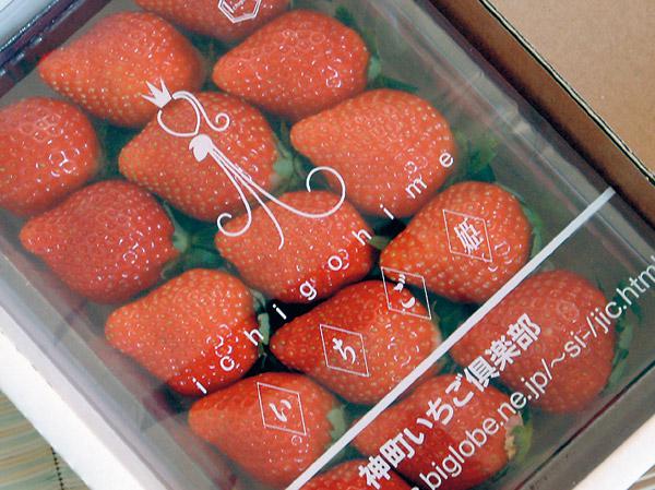 いちご姫はパッケージも工夫をしています。芸工大の学生に依頼して、フィルムも箱もオリジナルのデザインに。ギフトにもよろこばれそうですね。