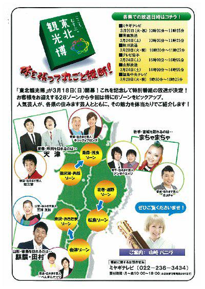 • ミヤギテレビ・・・3月20日(火曜日・祝日)10時30分〜11時25分