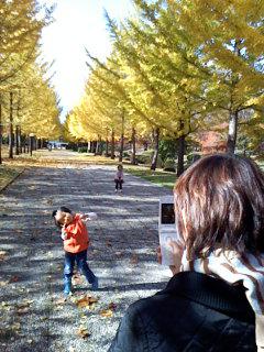 花菜をおかあちゃんが撮影しているところを撮影。このあと公園で遊んで、落ち葉を拾ってきました。