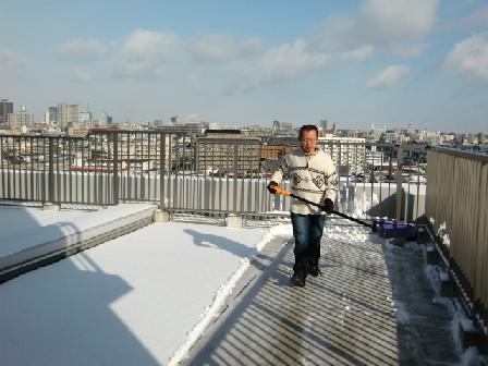 雪国とは比べるほどもありませんが、凍ってしまわないうちにせっせと雪かきを始めた、我が家の旦那様。