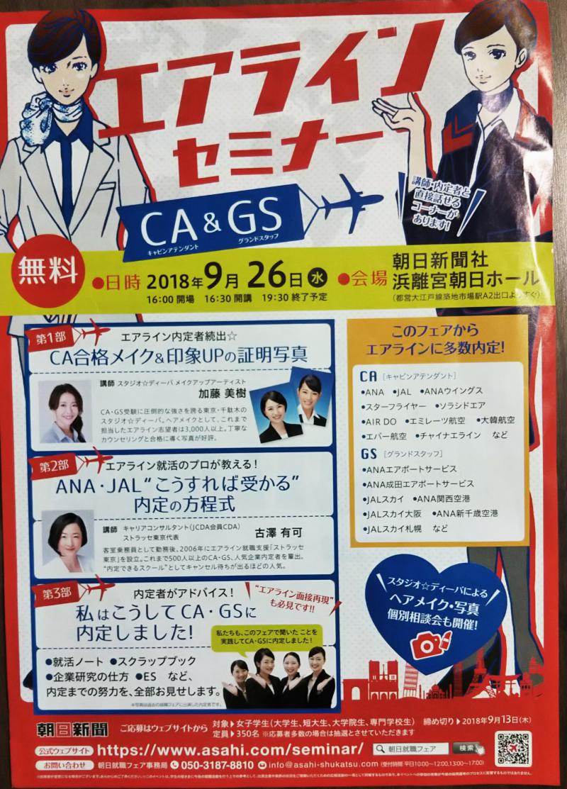学生課のカウンターにエアラインセミナーのパンフレットが。