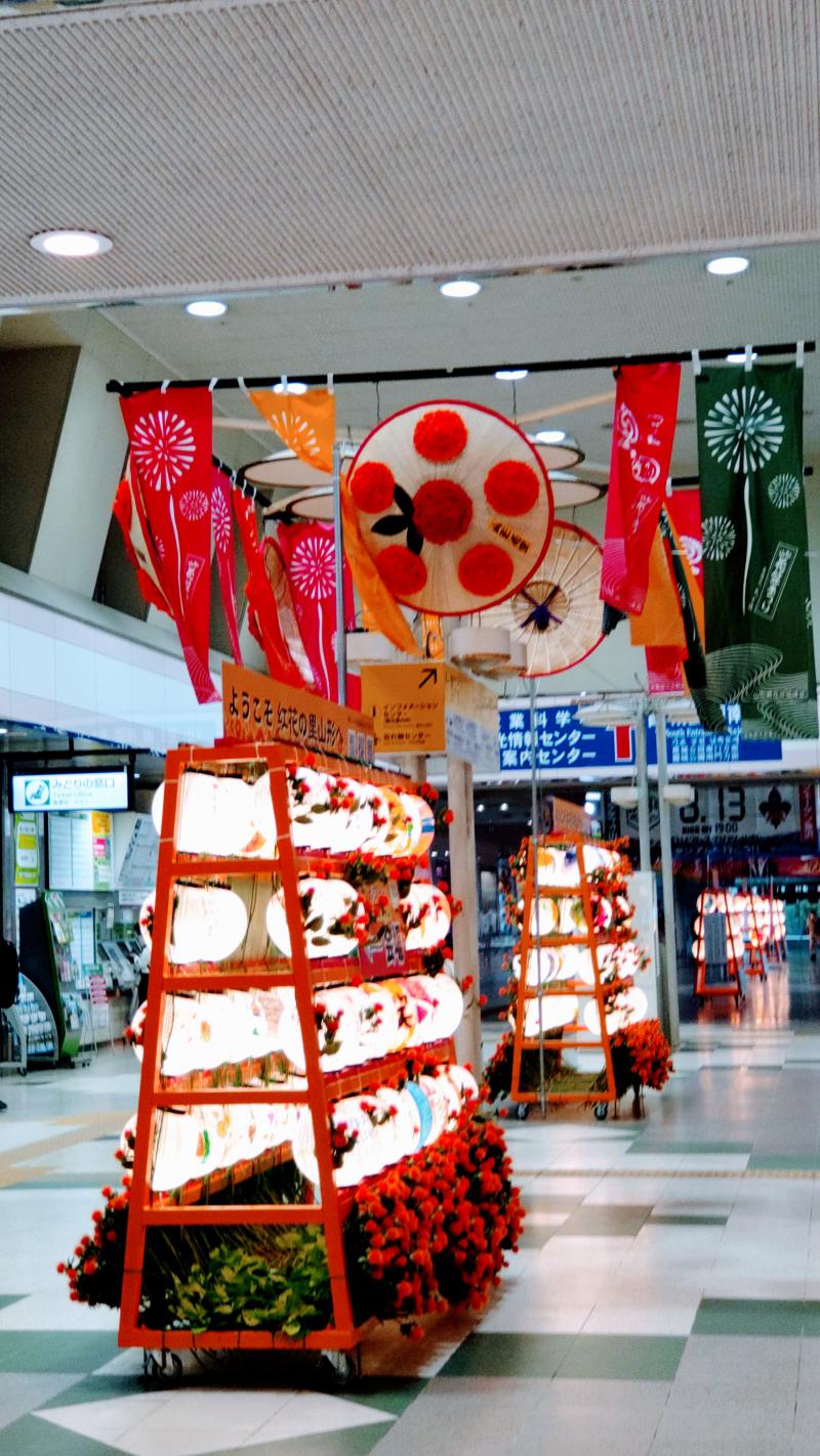 山形駅の花笠飾り、賑やかです。