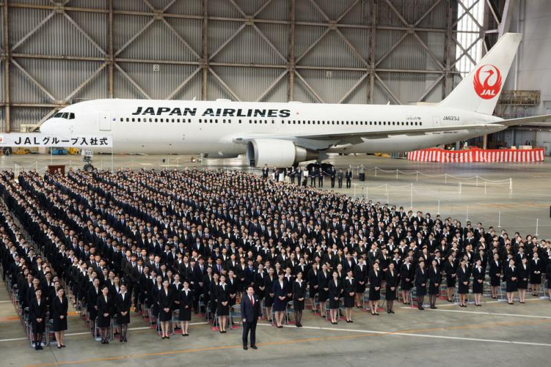 日本航空でも4年ぶりに入社式が行われたそうです。