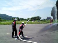 ちょっと前の写真になりますが、最上川河川緑地公園の駐車場で放水を行っている消防団の人たちを見かけました。