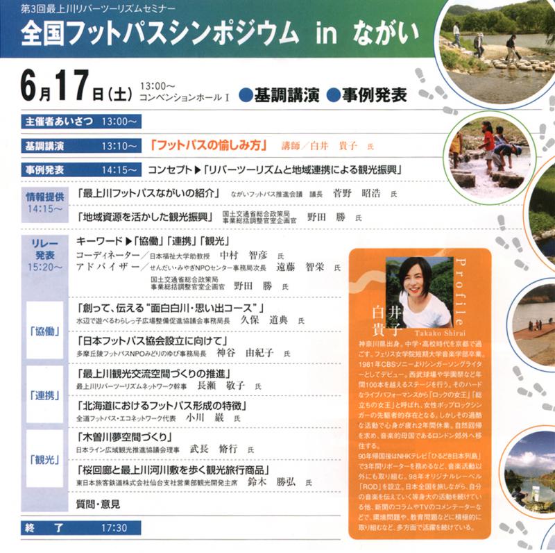 白井貴子氏による「フットパスの楽しみ方」基調講演やその他、事例発表などがあります。