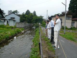 ながいフットパス推進会議のメンバーで市内水路の現状調査を実施しました。長井市内の水路は、水が豊富で水質も良いため、梅花藻(バイカモ)が生息している所もあります。今日は、その梅花藻の生息状況と川底のゴミや土砂の堆積状況について確認しました。