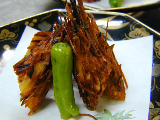 レディースプランで2泊というお客様もいらっしゃいます。今日はその連泊様のお料理ということでその1品がこちら。さつまいもを千切りにした物を表面にまぶして...とてまひまかけてましたよ。