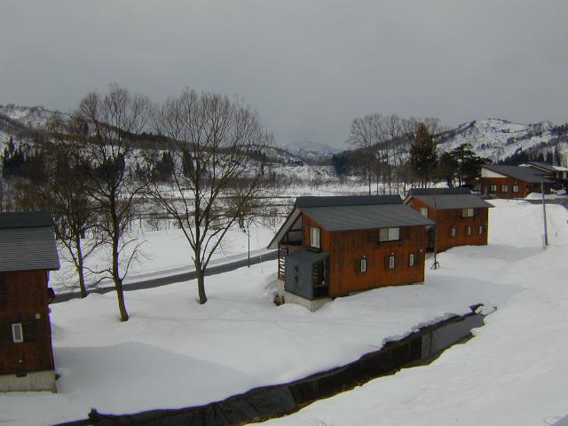 コテージは冬期間は閉鎖中。例年だと建物の半分ぐらいの高さまで積雪があるのですが今年はご覧の通りです。除雪のストレスからは開放されてます。