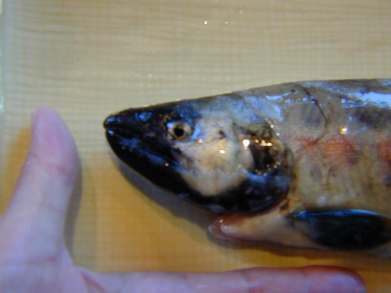 養殖のやまめは口先が丸いのですが天然はとがっています。