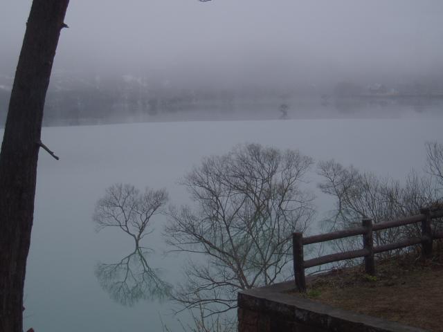 分単位でいろんな表情を覗かせる白川湖。これも朝霧のなせる技。