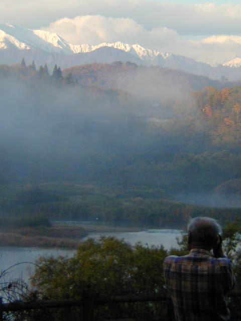 いいで山もついに真っ白。もやが晴れた今朝は最高のロケーションでの朝食となりました。雪化粧した雄大ないいで山を眺めながらの朝食となりました。