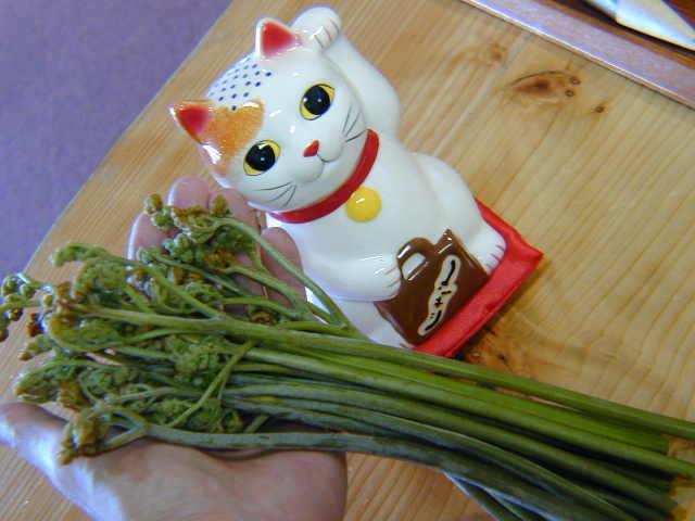 出ました!わらび。今年は雪が少なかったせいかわらびの出が早い様です。中津川の観光わらび園は17日が開園。待てないわらびはもうこんなに伸びてました。